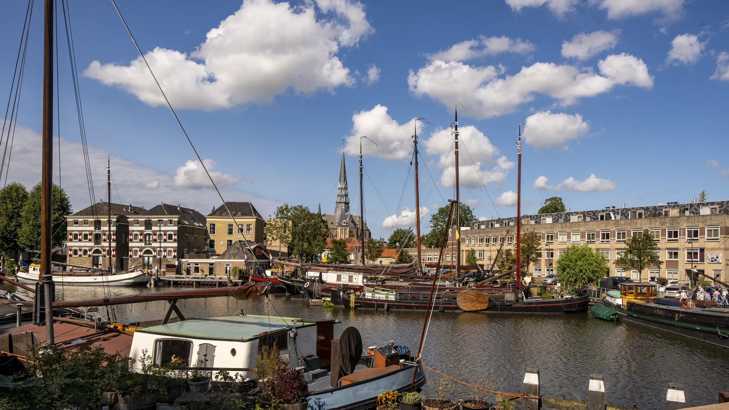 Das Wasserviertel rund um die Grachten zeigt Gouda von seiner ursprünglichsten Seite: schmale Häuschen, Spiegelungen im Wasser und kleine Boote, die durch die Kanäle gleiten. Die Nähe zu Flüssen macht die Stadt zugleich historisch bedeutend und landschaftlich reizvoll. Besonders abends entsteht ein magischer Moment, wenn sich das Licht in den Grachten bricht.